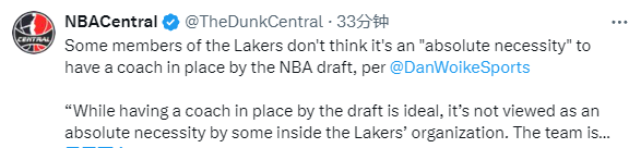 据此前报道,湖人希望在今年选秀之前确定主教练,距离NBA选秀还剩两周,留给湖人的时间确实不多了。