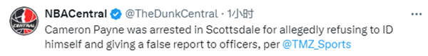 来源:JRS直播网06-15 10:53JRS直播网讯 北京时间6月15日,据美媒TMZ报道,当地时间周五早上,76人后卫卡梅隆-佩恩在亚利桑那州被捕,警方声称他向执法人员提供了虚假报告。