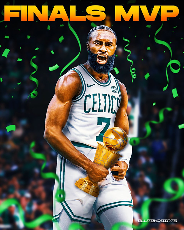 来源:JRS直播网06-18 11:38JRS直播网讯 北京时间6月18日,2023-24赛季正式结束,凯尔特人4-1淘汰独行侠夺得总冠军,杰伦-布朗力压塔图姆夺得总决赛MVP,布朗夺得生涯首冠还包揽双MVP成本赛季最大赢家。
