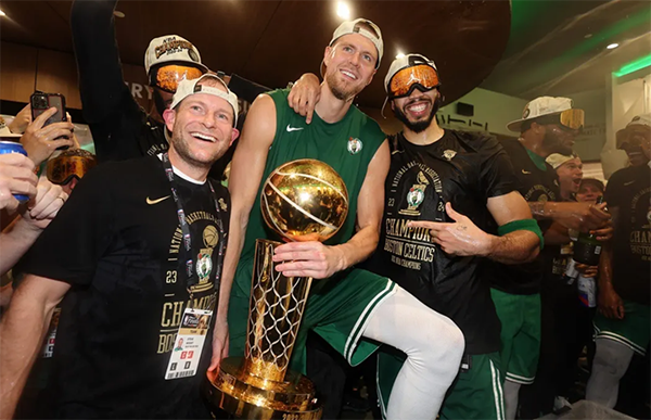 来源:JRS直播网06-19 13:21JRS直播网讯 足足等了16年,凯尔特人终于再次捧起总冠军奖杯,夺得队史第18座总冠军;塔图姆掩面哭泣,布朗获FMVP疯狂庆祝,在更衣室中绿军众将抽雪茄、喷洒香槟庆祝夺冠。