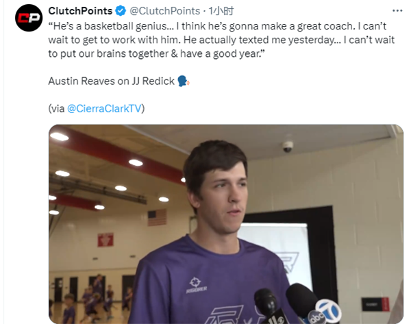 据悉,湖人聘请雷迪克担任主帅获得浓眉以及其他关键球员的支持,今日接受采访时,奥斯汀-里夫斯谈到湖人新帅雷迪克,直言:他是个篮球天才,我认为他会成为一名出色的教练。我迫不及待地想和他一起工作。他昨天还给我发短信,我迫不及待地想让我们一起努力,度过美好的一年。