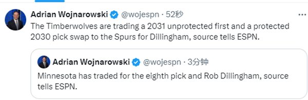 1换2!马刺8号签选中迪林厄姆即刻交易给森林狼