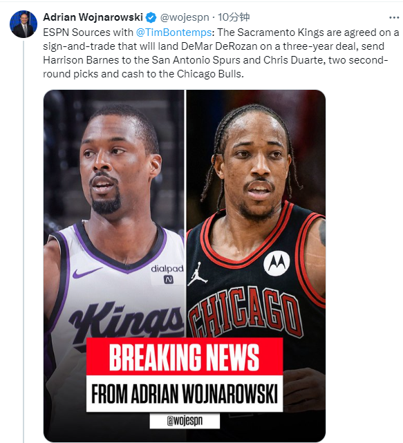 重磅!德罗赞先签后换入国王 巴恩斯赴马刺