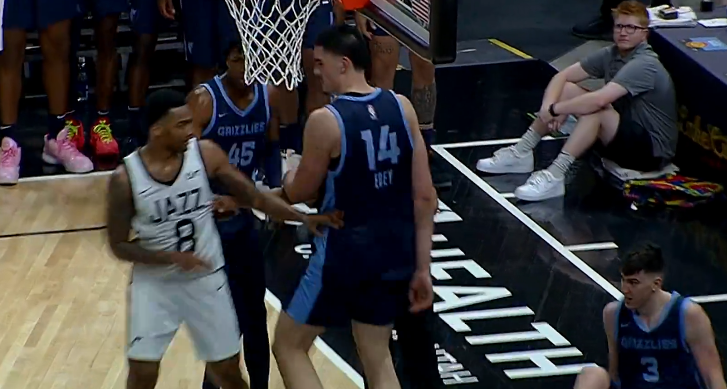 来源:JRS直播网07-09 11:14JRS直播网讯 北京时间7月9日,NBA夏季联赛加州经典赛,在灰熊和爵士比赛中,场上爆发冲突,灰熊新秀扎克-伊迪为队友出头挑衅对手引冲突,爵士新星乔治指着伊迪狂喷垃圾话,双双吃到技术犯规。