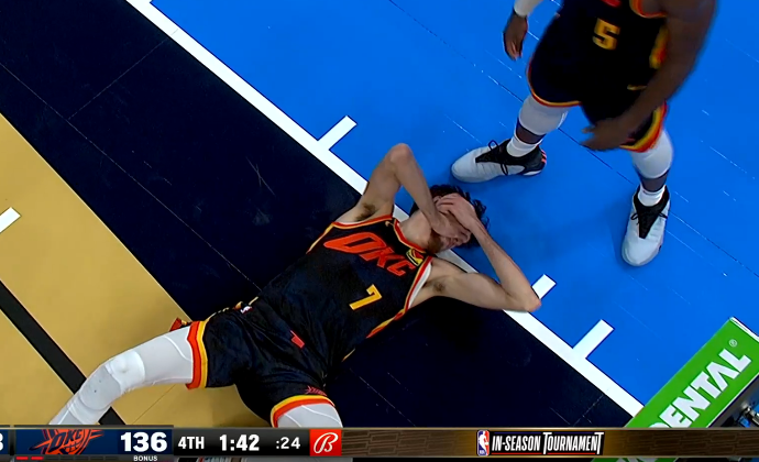 本场比赛的最后时刻,格林上篮肘击到霍姆格伦的面部,后者捂着面部痛苦倒地,裁判回放之后维持原判,如此吹罚同样引争议。