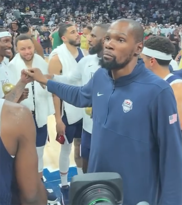 奥运男篮热身赛:美国队获胜 詹杜互动成焦点