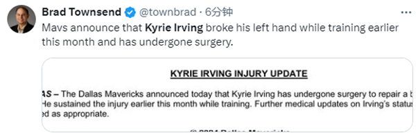 独行侠官宣欧文左手骨折手术 新赛季冲冠阵容待他归来