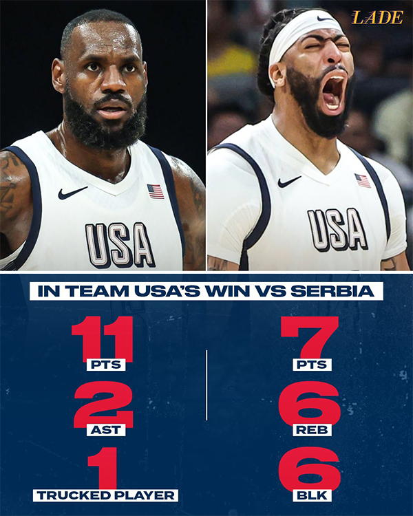 三场热身赛,美国男篮用了三套首发,詹姆斯、库里和恩比德一直首发,杜兰特因小腿伤势连续缺席比赛;今日26分大胜塞尔维亚,库里24分大爆发,詹姆斯暴扣,浓眉7分6盖帽6篮板、阿德巴约17分7篮板都立功,赛后老詹在球员通道直呼阿德巴约与库里是新版水花兄弟。