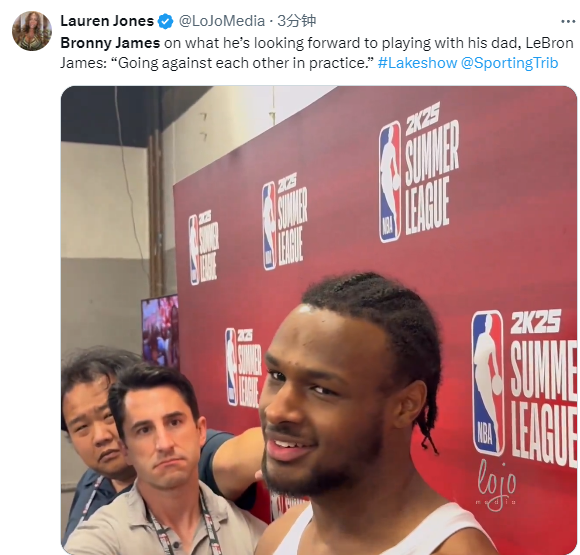 离场时,布朗尼拥抱湖人主教练雷迪克;在新闻发布会上,布朗尼透露夏联期间詹姆斯给他的建议就是即使投不进,也要保持积极性;布朗尼还表示与詹姆斯一起打球最期待的是在训练中与老爸互相对抗。