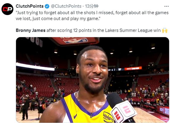赛后布朗尼接受采访时满脸笑容十分开心,谈到今日表现,布朗尼表示:我只是想忘掉所有我错过的投篮,忘掉我们输掉的所有比赛,只是想打出自己的风格。