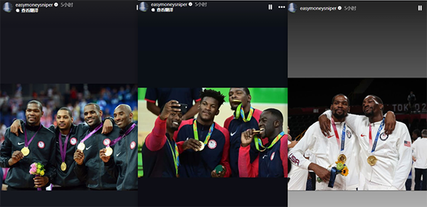 杜兰特还连续晒出自己此前三次夺得奥运金牌的合影,疑似继续不满未被邀请拍摄奥运宣传片;据悉,杜兰特是三位与耐克签下终身合同的球员之一,另外两位是乔丹和詹姆斯,他与耐克的合作要追溯到2007年,目前耐克已经为杜兰特推出了17代签名鞋。