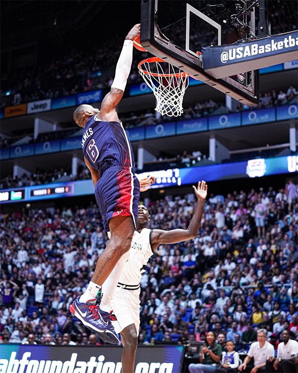 来源:JRS直播网07-21 12:15JRS直播网讯 北京时间7月21日,奥运男篮热身赛美国男篮1分险胜南苏丹,39岁的詹姆斯开启全力詹模式,全场出战23分钟,14投10中独砍25分6篮板7助攻,多次霸气暴扣点燃球馆,终场前8秒上篮准绝杀。