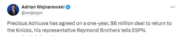 尼克斯续约阿丘瓦 今夏 操作频频剑指新赛季