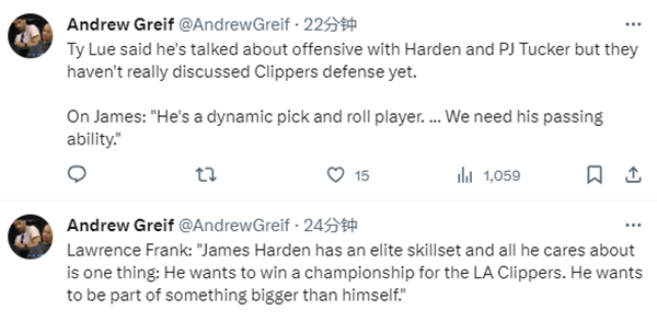 谈到哈登的目标,快船总裁弗兰克表示:他想要的只有一件事——与洛杉矶快船一起赢得NBA总冠军!他拥有杰出的篮球技能,他想为洛杉矶快船赢得总冠军,他想成为更伟大的事业的一部分。