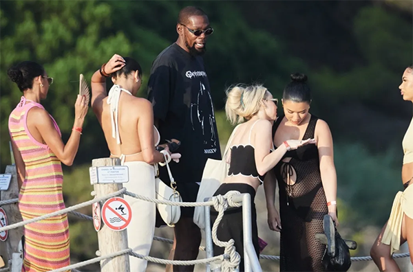 在圣特罗佩享受美好时光期间,杜兰特的身边环绕着众多美女,与美女们一起在海滩上赤脚漫步,很明显,看起来杜小帅的心情极佳。