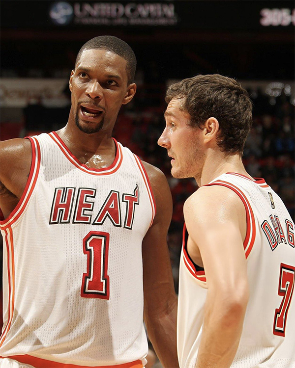 波什退役前曾和德拉季奇当过队友,生涯最后一年,波什为热火出战了53场比赛,场均拿到19.1分7.4篮板2.4助攻;生涯13年先后为猛龙和热火两队效力,累计出战893场常规赛,场均拿到19.2分8.5篮板2助攻。