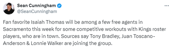 国王即将开启自由球员试训 4 人竞争最后阵容名额
