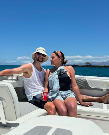 库里和阿耶莎带着大女儿莱利-伊丽莎白、二女儿瑞安-卡森和儿子卡侬乘船享受海上生活,期间他们看到了海豚,船上充满欢声笑语,一家人太幸福了。库里戴着墨镜和帽子,冲着镜头微笑以及嘟嘴卖萌,阿耶莎深情地看着库里,又撒了一波狗粮。