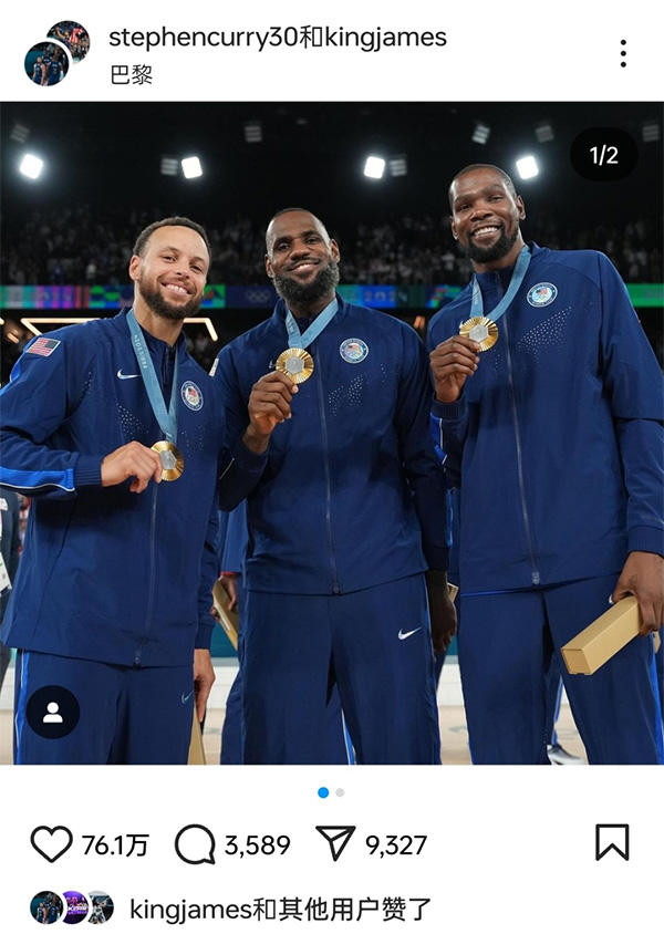 来源:JRS直播网08-22 11:59JRS直播网讯 在北京时间 8 月 22 日这一天,库里与詹姆斯一同在社交媒体上引发了一阵热潮。他们联合发布了詹杜库在奥运期间的两张极具纪念意义的合影。