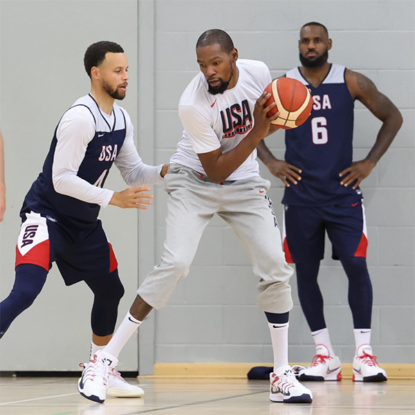 这两张照片迅速吸引了众多球迷的目光。其中一张是美国队成功夺得奥运金牌后三巨头的合影,他们站在一起,金牌闪耀,笑容满面,那是胜利的象征和团队荣耀的体现。另一张则是在美国男篮队内训练时的场景,库里正全身心地投入到对杜兰特的防守中,而詹姆斯在一旁密切观察,这一画面仿佛定格了他们在奥运备战期间的专注与努力。