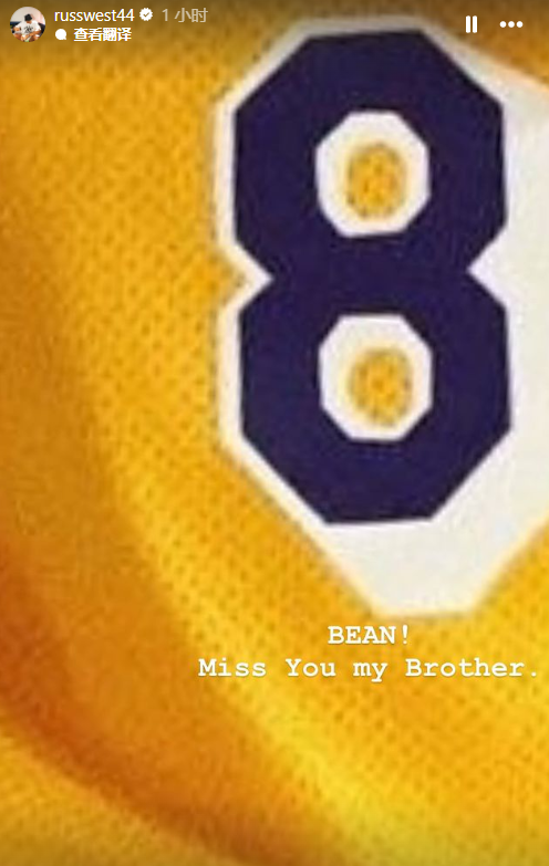 威少还晒湖人8号紫金球衣,配文写道:科比!想你了我的兄弟。