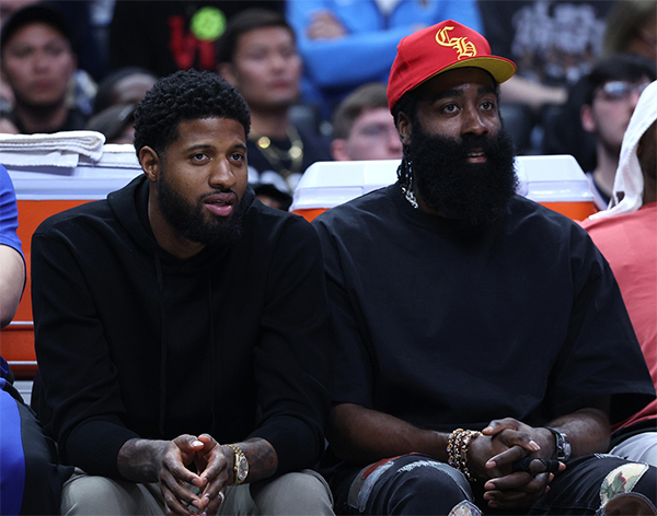 2023-24赛季,哈登为快船出战72场常规赛,场均拿到16.6分5.1篮板8.5助攻;乔治为快船出战74场,场均拿到22.6分5.2篮板3.5助攻,小卡遭遇伤病困扰,哈登和乔治带队在季后赛首轮2-4不敌独行侠。