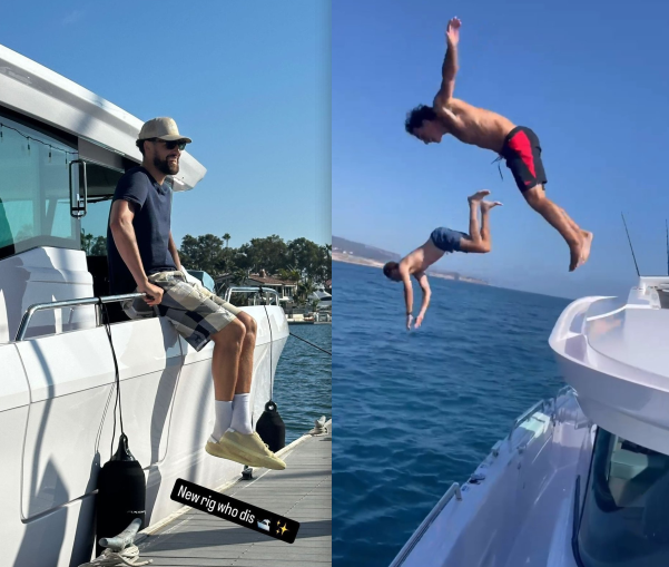 来源:JRS直播网08-30 13:17JRS直播网讯 今夏独行侠新援克莱-汤普森玩嗨了,训练度假尽享休赛期;不久前,汤普森通过社媒晒出他新买的一条船,坐在船上咧嘴大笑;他还晒出开船出海并且与友人一起从船上跳进大海里以及开着船与海豚并行。