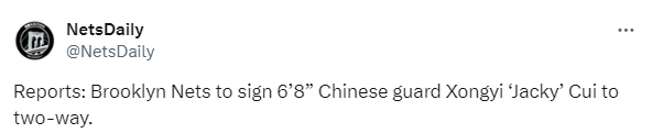 来源:JRS直播网09-03 10:40JRS直播网讯 北京时间9月3日,据篮网记者Lucas Kaplan报道,篮网将与来自中国的后卫崔永熙签下一份为期两年的双向合同,多位内部人士透露篮网认可其3D潜力。