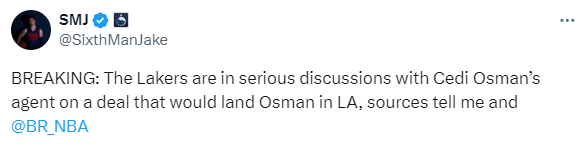 湖人训练营大名单已经超额,估计将在训练营开启前裁员;另外,据欧洲记者Alessandro Maggi报道,奥斯曼与贝尔坦斯一样,他们都把重返NBA作为自己的首要任务,湖人对奥斯曼表达了兴趣。