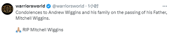 来源:JRS直播网09-14 11:54JRS直播网讯 北京时间9月14日,噩耗,勇士球星安德鲁-维金斯的父亲米切尔-威金斯因病去世,享年64岁,为维金斯一家人祈祷。