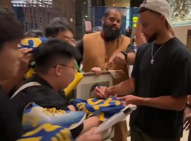 库里疯狂签名引热潮:手机壳塑料袋皆不放过,球迷激动落泪