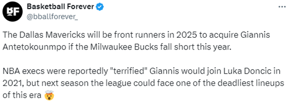 美媒爆料:雄鹿新季若战绩欠佳,独行侠或于明夏强势争夺字母哥