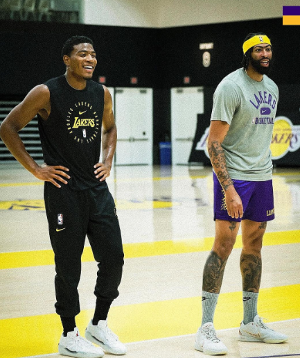 湖人三员大将都身穿湖人训练服进行训练,39岁詹姆斯身穿长裤长袖以及戴着头巾,包裹地很严实;浓眉身穿短裤、短袖凸显大长腿,还佩戴着黄色发带;八村垒则是双手掐腰,他们都满脸笑容十分轻松。