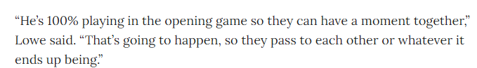 来源:JRS直播网09-19 11:18JRS直播网讯 北京时间9月19日/讯名记Zach Lowe报道,詹姆斯父子将在新赛季揭幕战迎来NBA首秀,Lowe在节目中表示:布朗尼100%会出战新赛季揭幕战,这样他和詹姆斯就会有一个特别的瞬间。这肯定会发生的,他们会互相传球或者干些其他的。