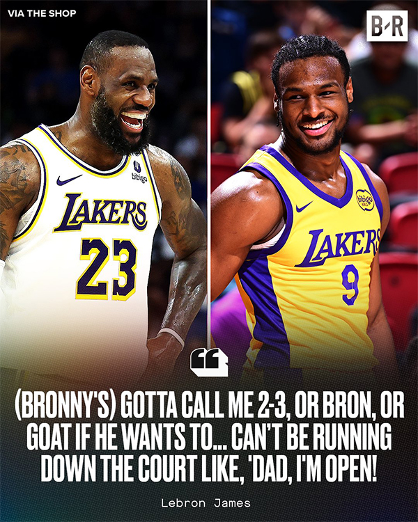 值得一提的是,詹姆斯曾公开表示他已经和布朗尼说好了,在球场上,布朗尼不能直接喊他爸爸,可以喊他23号、勒布朗或者GOAT。