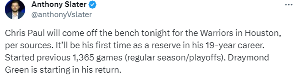 保罗生涯首次替补!多项历史第一纪录终结:连续1365场首发作古
