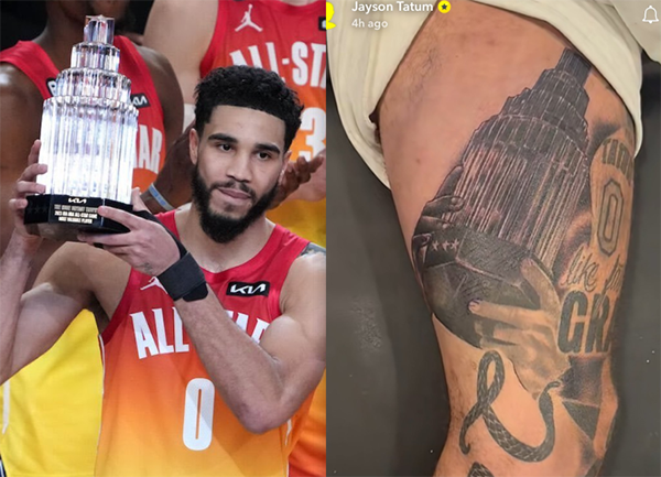 塔图姆以纹身铭记荣耀,背刻亲吻总冠军奖杯,今夏荣誉满满剑指两连冠