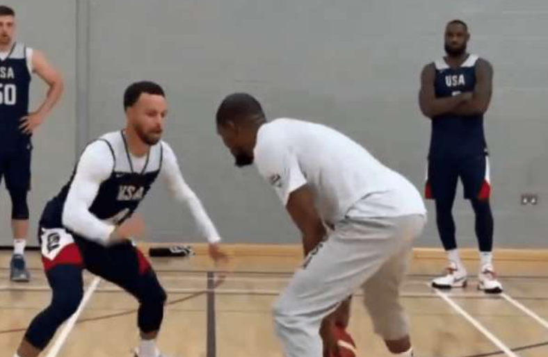 在此前的美国男篮训练营中,多名球员参与单挑,詹姆斯一直站在一旁观看未参加。