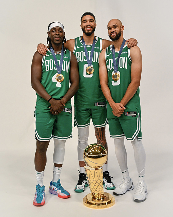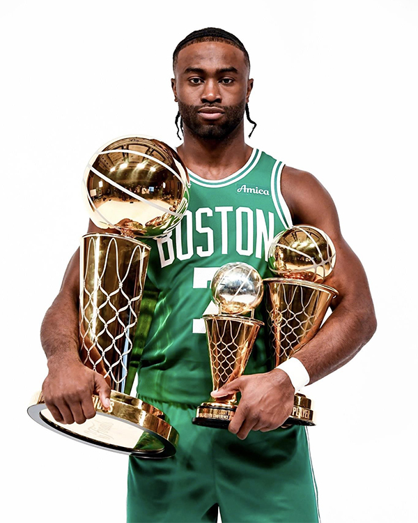 23-24赛季,杰伦-布朗出战70场常规赛,场均拿到23分5.5篮板3.6助攻,在季后赛赢得东决MVP、总冠军和FMVP,新赛季他将和塔图姆一起带队开启卫冕之旅。