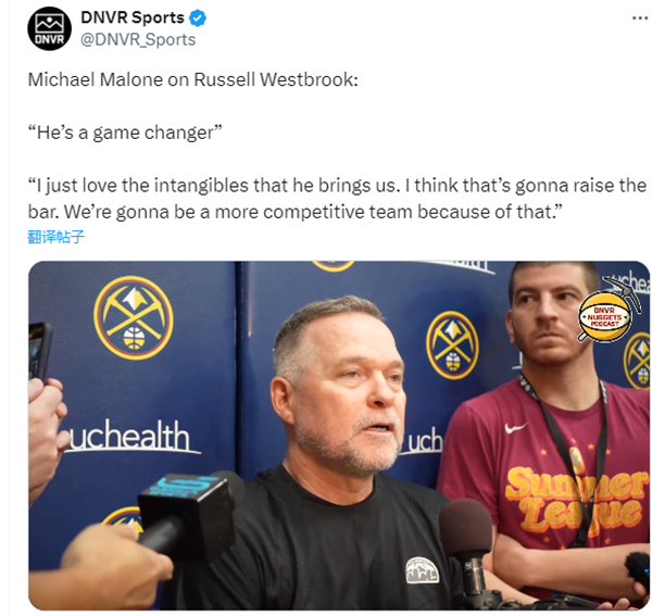 训练结束后,掘金主帅马龙表示,威少是今天最早来到球馆训练的那个人。