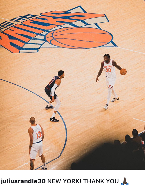 如今兰德尔本人在交易后正式发声,一句“纽约,谢谢你”告别尼克斯。