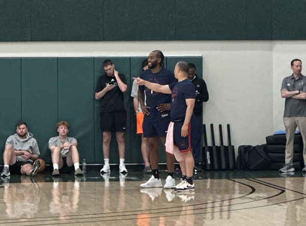 快船首日训练营:小卡亮相与卢帅畅聊,无奈膝伤缺阵篮球训练