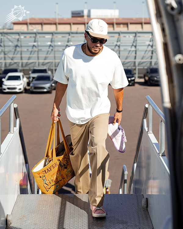 太阳众将一起乘坐飞机飞往棕榈泉,根据NBA新赛季的季前赛赛程,太阳将在明天上午对阵湖人,这是太阳季前赛首战,杜兰特、布克和比尔三巨头对阵詹姆斯和浓眉;上一场湖人17分惨败森林狼,詹眉都轮休不打,詹眉已经确定出战明天与太阳的比赛。