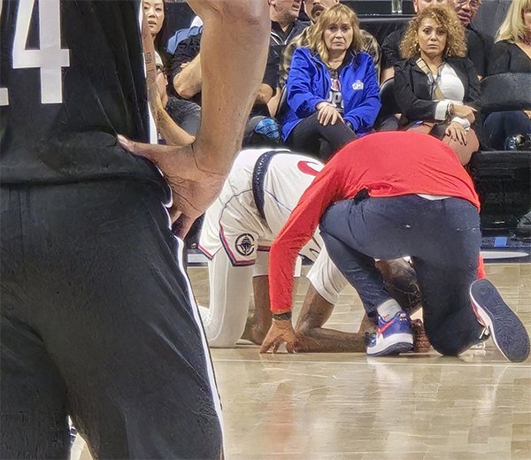 上半场快船遭遇新的伤病,小德里克-琼斯意外受伤,趴在地板上十分痛苦,初步诊断,琼斯的头部挫伤,并且因伤退出比赛。伤退前,琼斯上场13分钟,1投1中拿到3分3盖帽1抢断。