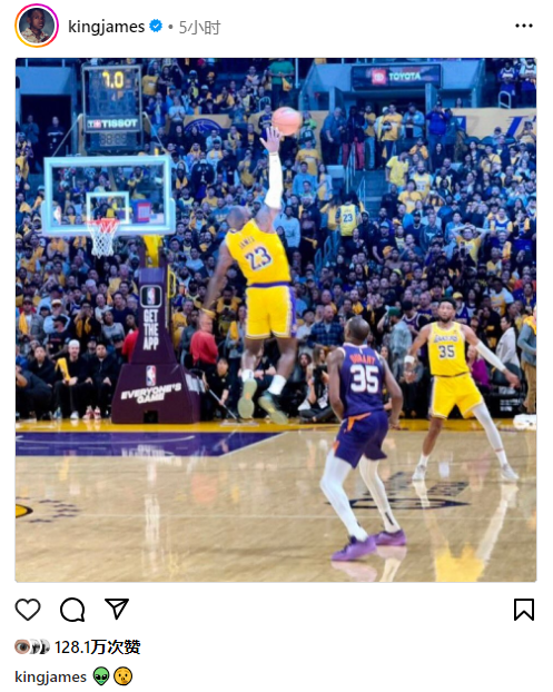 老詹在Ins晒出自己逆天弹跳,并且配上两个表情,湖人在评论区写道:生儿不同;湖人官方还专门晒照盛赞老詹并高呼怎么做到的。