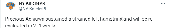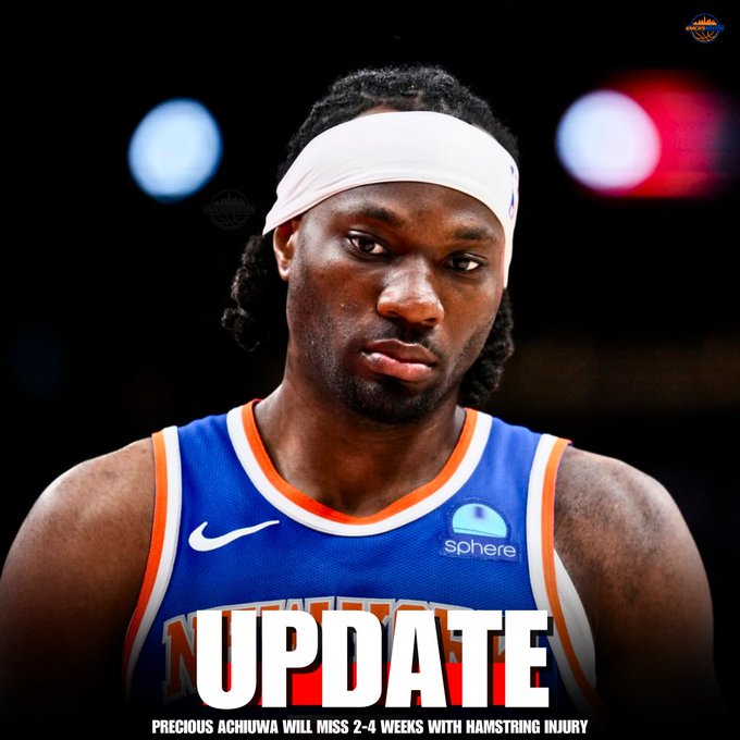 尼克斯再遭打击!阿丘瓦左腿筋拉伤,休战 2-4 周缺席多场比赛