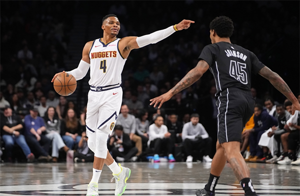 下半场,威少第三节急停中投得分以及干拔命中三分球,末节威少突破上篮,助攻沃特森命中三分,强突造犯规继续罚球得分,追身三分同样一击即中,此时威少怒吼庆祝,威少带领掘金反超比分;威少下场后,约基奇和穆雷带队与篮网僵持拉锯,生死时刻约基奇连续得分把比赛拖进加时。