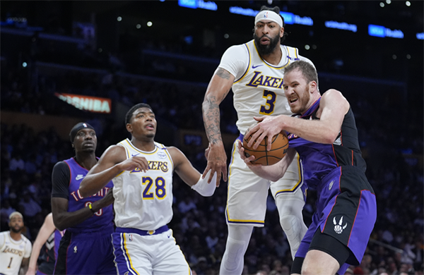下半场,第三节湖人又被猛龙拉开分差,60-68后浓眉命中弧顶三分,随后送出惊天大帽,老詹反击一条龙上篮得分,湖人起势疯狂反扑,可比赛打到5分18秒,浓眉在禁区单手大帽珀尔特尔,却被对手戳到眼睛,浓眉捂着眼睛痛苦倒地滚翻,痛得怒砸地板,湖人队医以及詹姆斯等人都围过来,缓了一段时间后,浓眉站起来,径直返回更衣室。