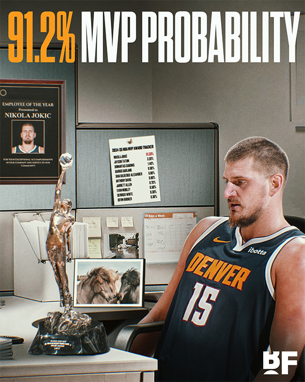 约基奇:91.2%概率夺MVP开启传奇 5年4夺将成历史第一人
