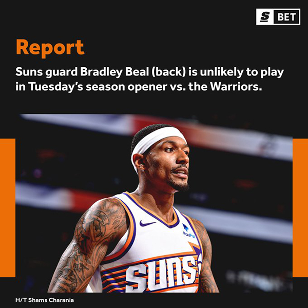 比尔太阳首秀或推迟!因伤不太可能出战勇士 太阳遭伤病侵袭令人担忧
